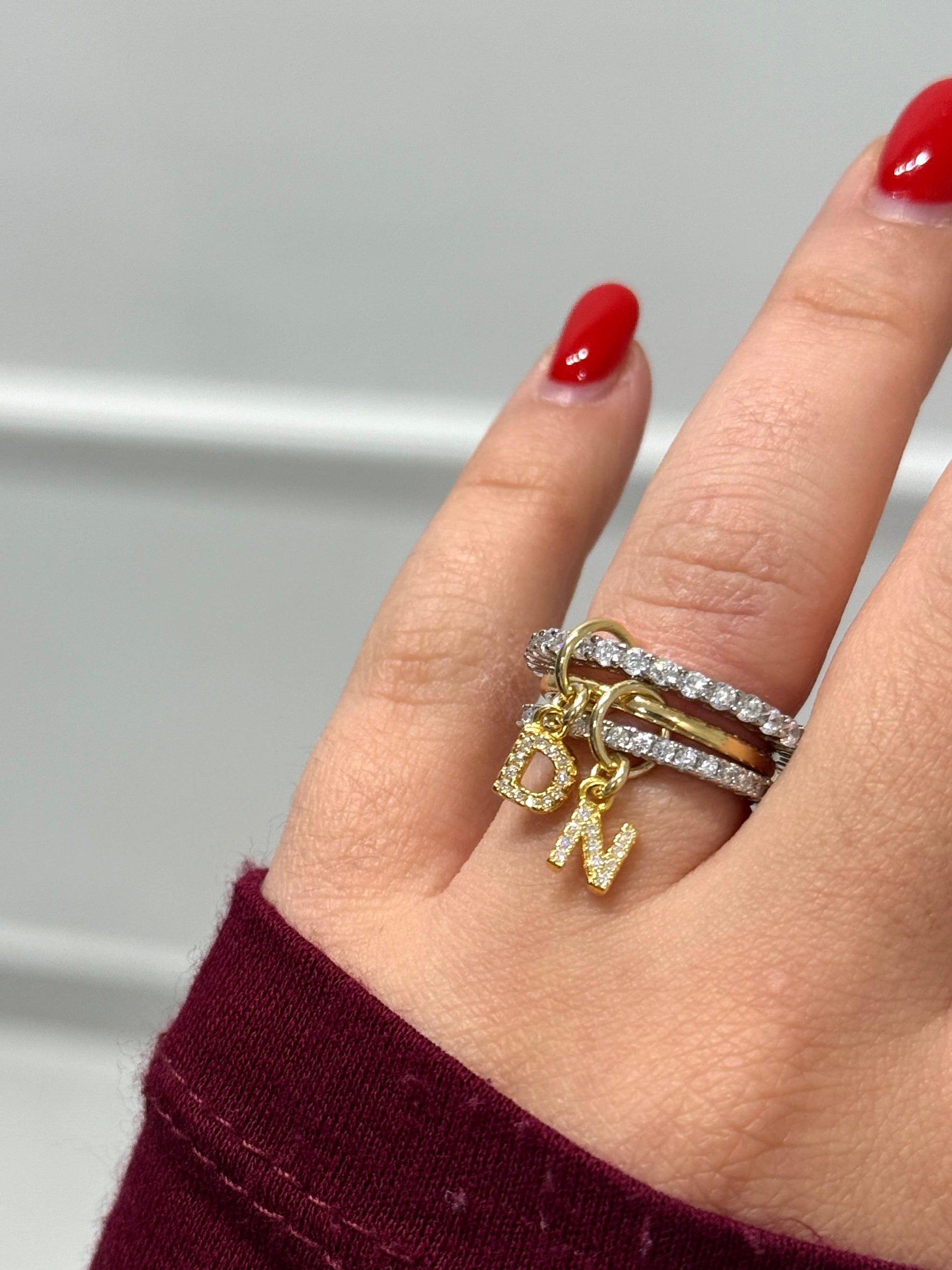 Anello realizzato in argento 925 galvanizzato in oro e zirconi. Scrivere nell' apposita box le letterine da inserire nell' anello. Tempi di lavorazione 5 giorni lavorativi.